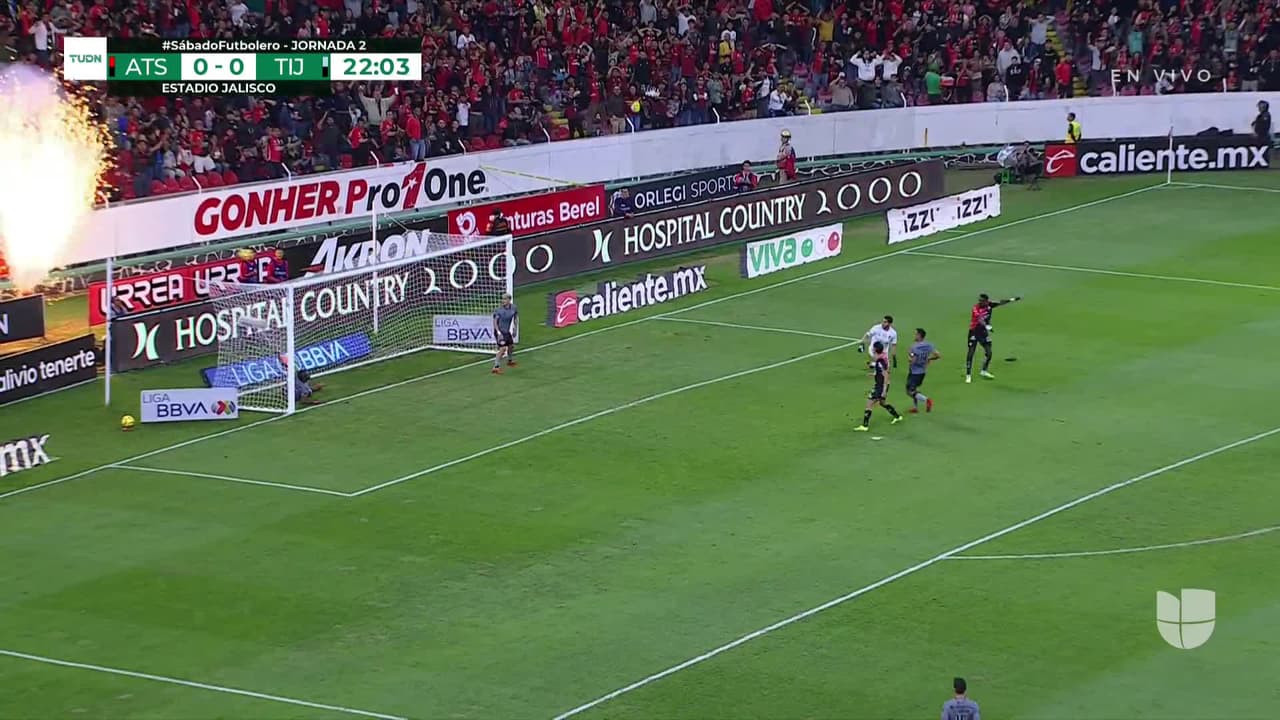 ¡Gol! Atlas 1| Club Tijuana 0. Mateo García (Atlas) Disparo con la derecha desde el lado derecho dentro del área al centro de la portería.