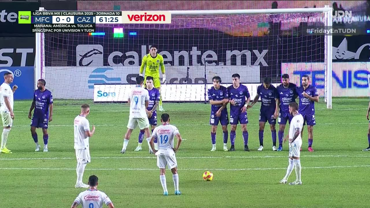 ¡Gol! Mazatlán FC 0| Cruz Azul 1. Mateusz Bogusz (Cruz Azul) marca de tiro libre directo| Disparo con la derecha.