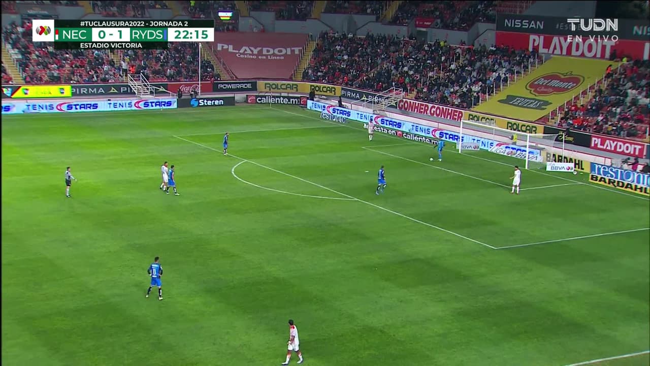 ¡Gol! Necaxa 0| Monterrey 2. Maximiliano Meza (Monterrey) Disparo con la derecha desde fuera del área.