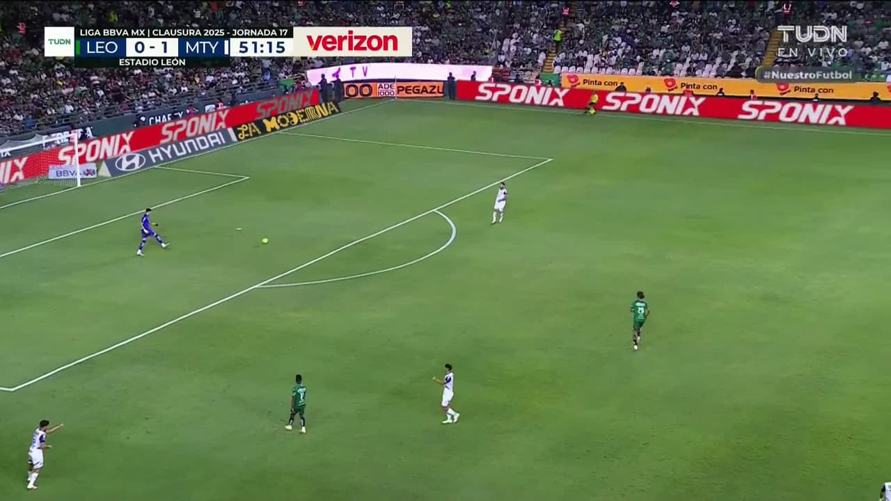 ¡Gol! León 0| Monterrey 2. Nelson Deossa (Monterrey) zurdazo desde fuera del área.