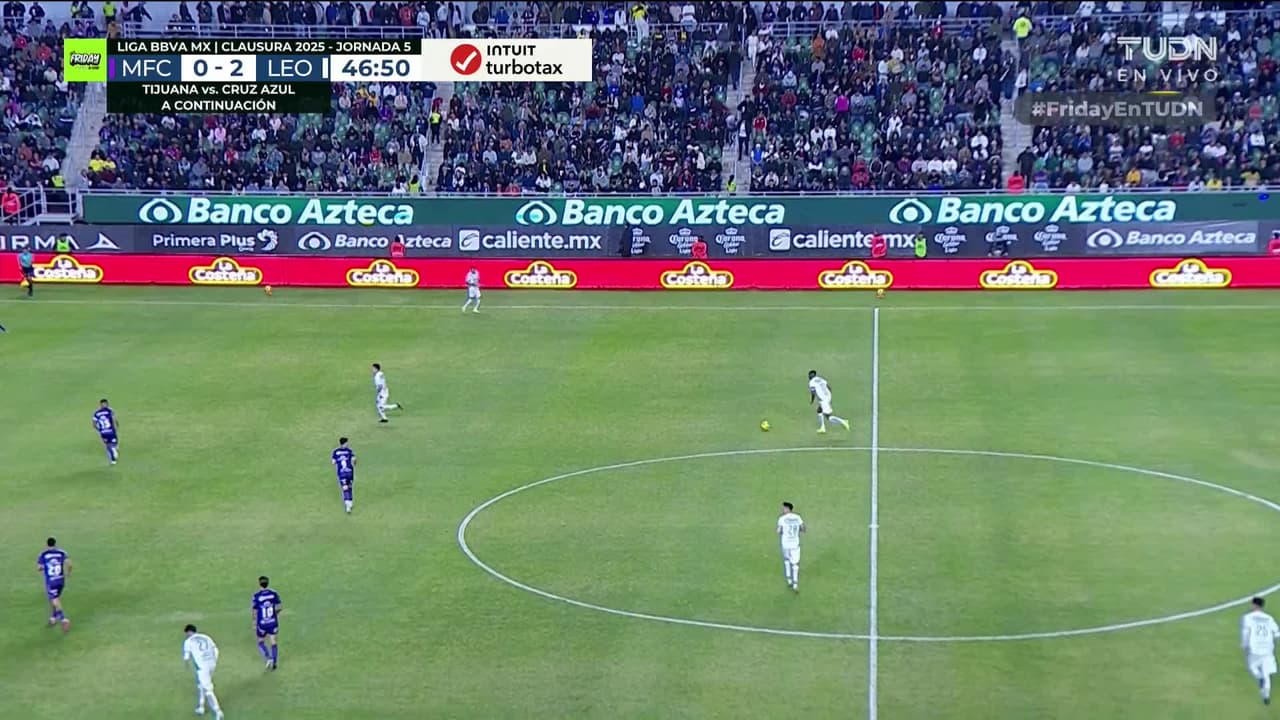 ¡Gol! Mazatlán FC 1| León 2. Nicolás Benedetti (Mazatlán FC) Disparo con la derecha desde el centro del área.