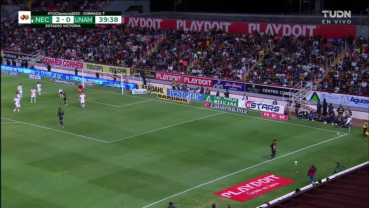 ¡Gol! Necaxa 2| Pumas UNAM 1. Nicolás Freire (Pumas UNAM) disparo de cabeza desde el centro del área tras un saque de esquina.