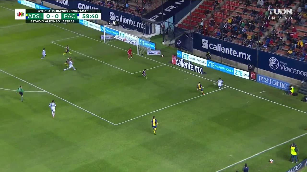 ¡Gol! Atlético San Luis 0| Pachuca 1. Nicolás Ibáñez (Pachuca) Disparo con la derecha desde muy cerca al centro de la portería. Asistencia de Víctor Guzmán con un centro al área.