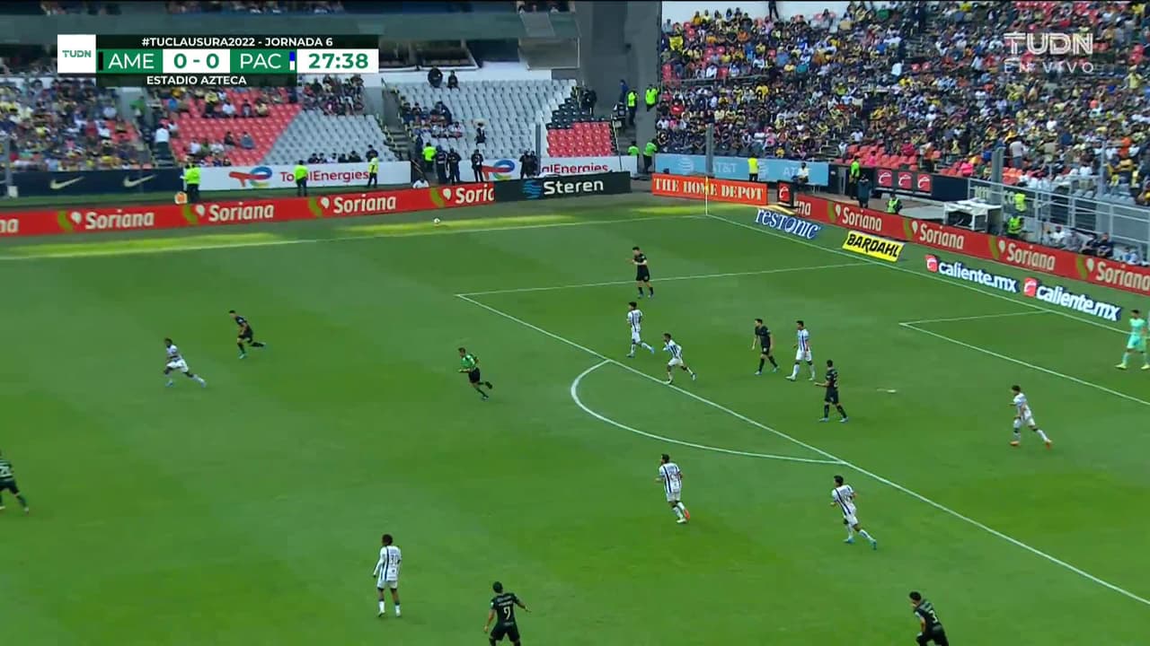 ¡Gol! América 0| Pachuca 1. Nicolás Ibáñez (Pachuca) zurdazo desde el lado izquierdo dentro del área tras un contragolpe.