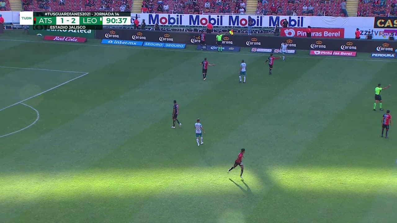 ¡Gol! Atlas 1| León 3. Osvaldo Rodríguez (León) zurdazo desde fuera del área.