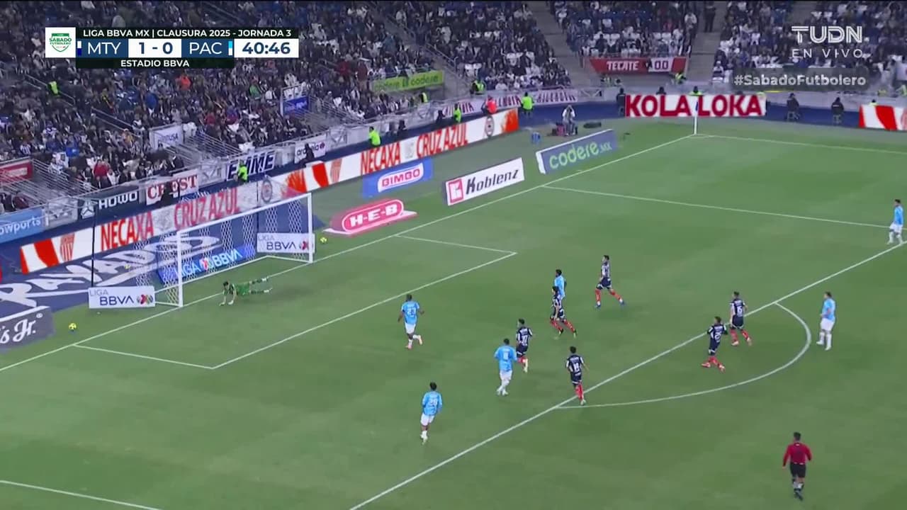 ¡Gol! Monterrey 1| Pachuca 1. Oussama Idrissi (Pachuca) Disparo con la derecha desde fuera del área.
