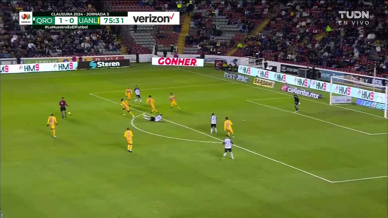 ¡Gol! Querétaro 1| Tigres 1. Ozziel Herrera (Tigres) Disparo con la derecha desde el centro del área.