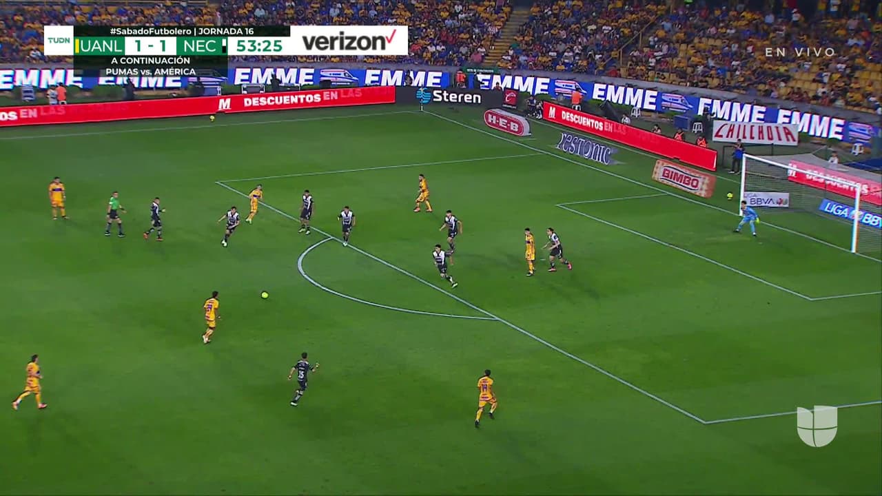 ¡Gol! Tigres 2| Necaxa 1. Ozziel Herrera (Tigres) Disparo con la derecha desde fuera del área disparo rastrero| junto al palo izquierdo. Asistencia de Marcelo Flores.