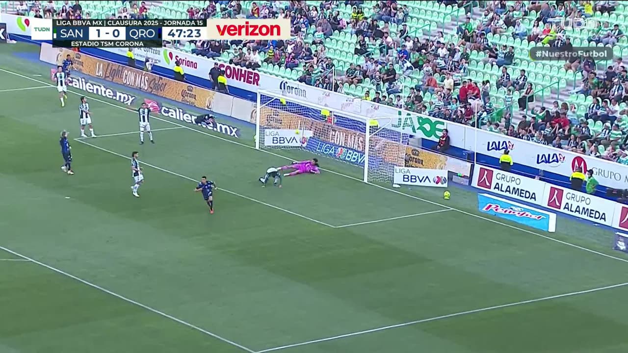 ¡Gol! Santos Laguna 1| Querétaro 1. Pablo Barrera (Querétaro) zurdazo desde el centro del área.