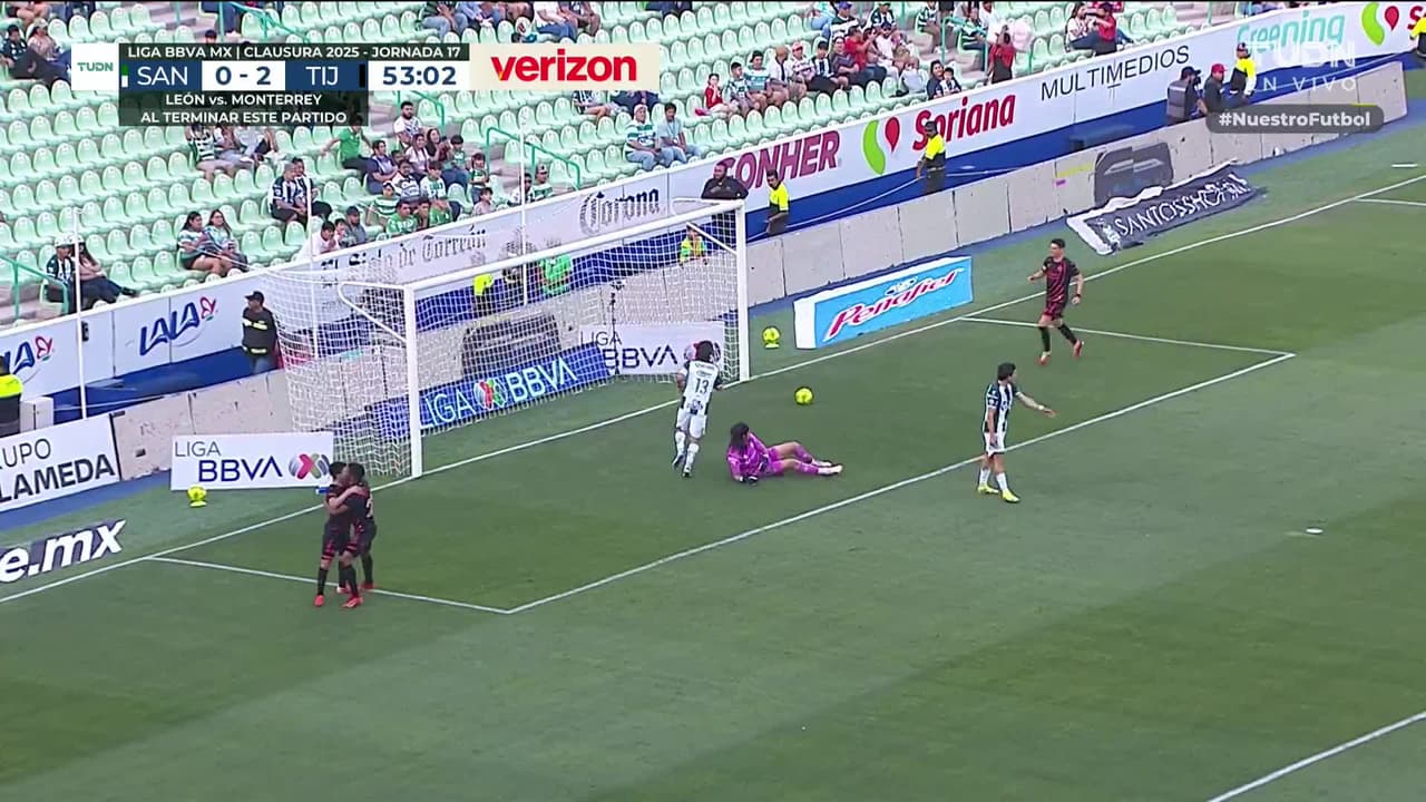 ¡Gol! Santos Laguna 0| Club Tijuana 3. Raúl Zúñiga (Club Tijuana) zurdazo desde el centro del área.