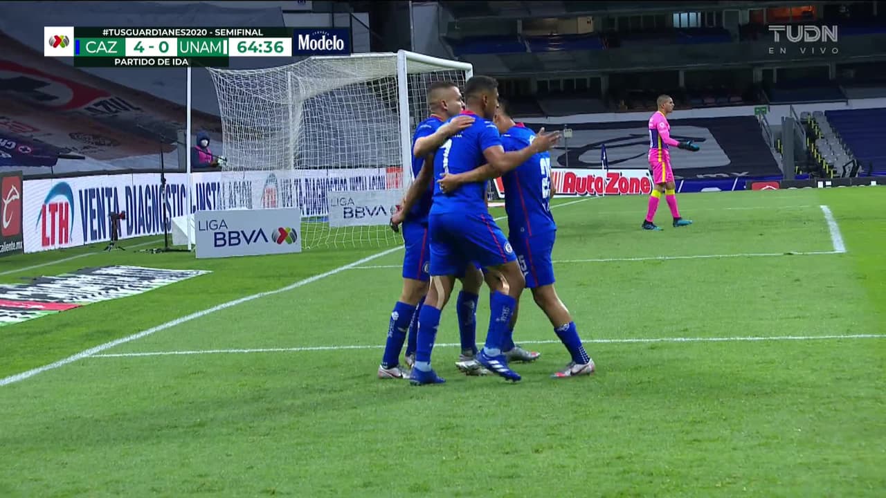 ¡Gol! Cruz Azul 4| Pumas UNAM 0. Roberto Alvarado (Cruz Azul) zurdazo desde el centro del área.