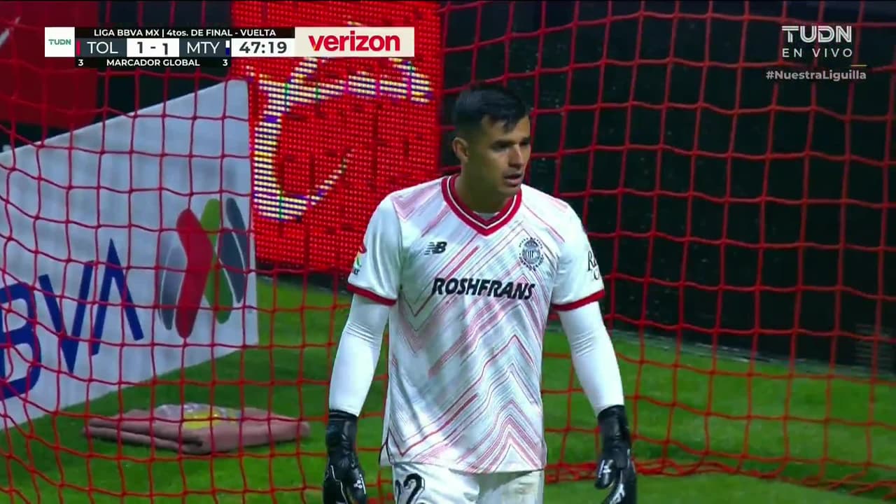 ¡Gol! Toluca 1| Monterrey 1. Roberto de la Rosa (Monterrey) Disparo con la derecha desde fuera del área.