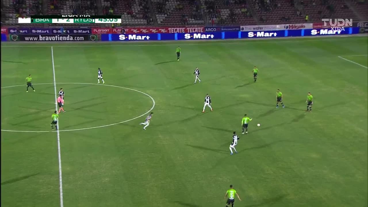¡Gol! FC Juárez 1| Monterrey 3. Rogelio Funes Mori (Monterrey) Disparo con la derecha desde el lado derecho dentro del área al centro de la portería.