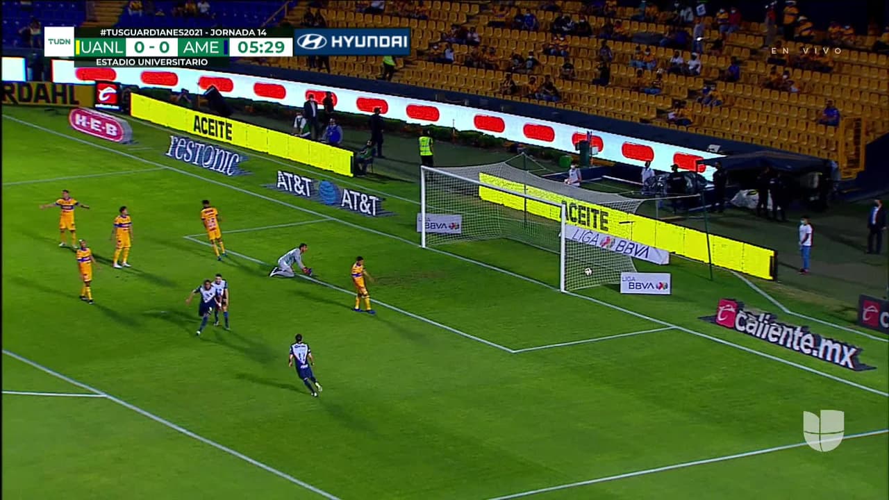 ¡Gol! Tigres 0| América 1. Roger Martínez (América) Disparo con la derecha desde el centro del área por el lado derecho de la portería. Asistencia de Álvaro Fidalgo.