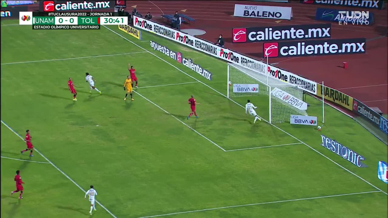 ¡Gol! Pumas UNAM 1| Toluca 0. Rogério (Pumas UNAM) Disparo con la derecha desde el centro del área.