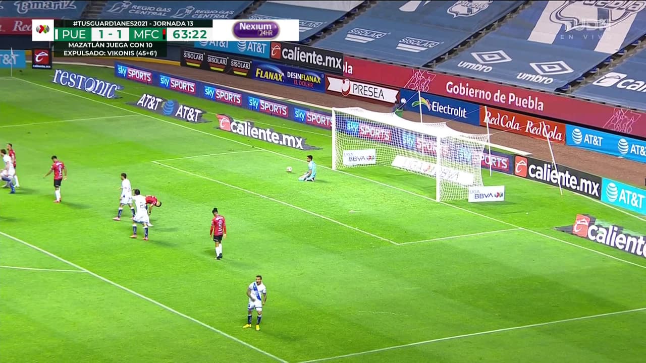 ¡Gol! Puebla 2| Mazatlán FC 1. Salvador Reyes (Puebla) zurdazo desde fuera del área al ángulo superior izquierdo. Asistencia de Javier Salas.
