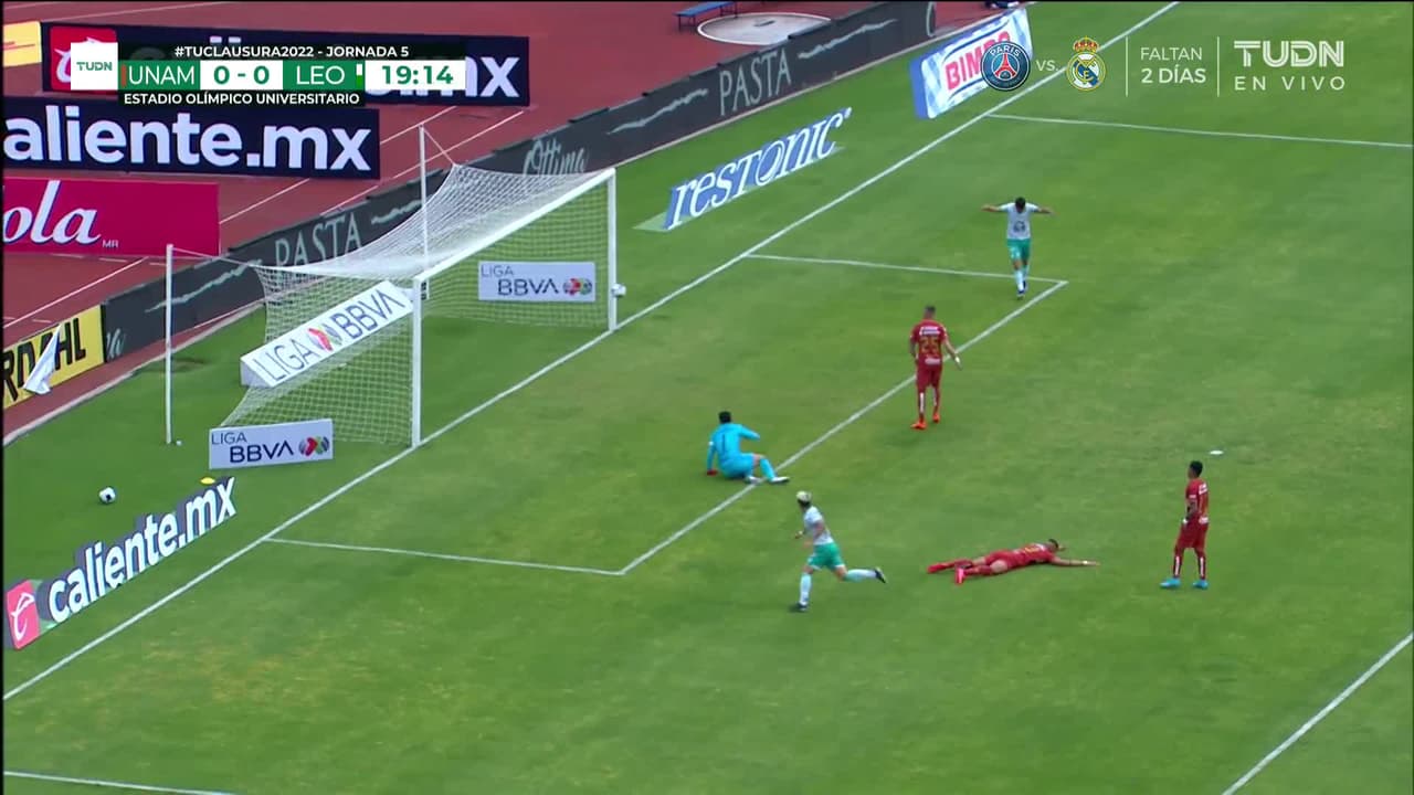¡Gol! Pumas UNAM 0| León 1. Santiago Colombatto (León) zurdazo desde el centro del área tras un contragolpe.