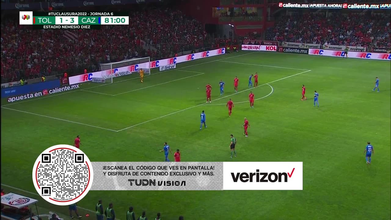 ¡Gol! Toluca 1| Cruz Azul 4. Santiago Giménez (Cruz Azul) disparo de cabeza desde el centro del área tras el cobro de una falta.