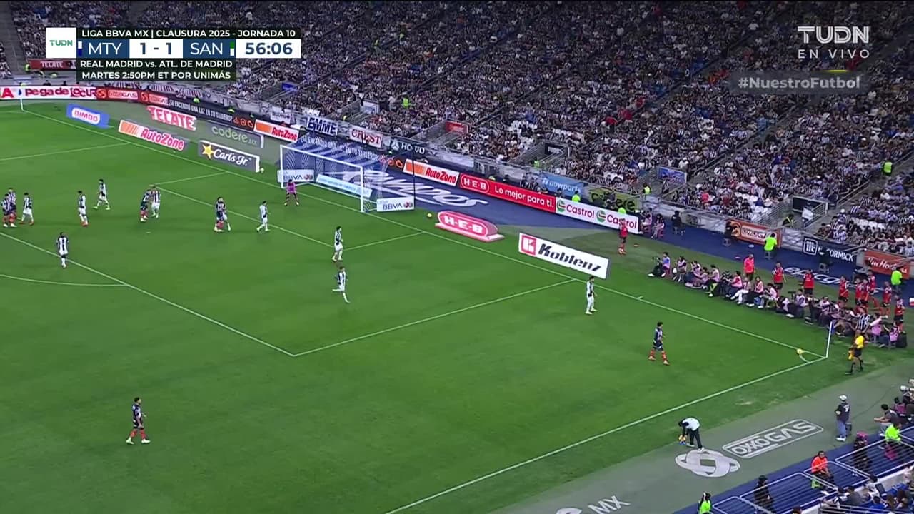 ¡Gol! Monterrey 2| Santos Laguna 1. Sergio Ramos (Monterrey) disparo de cabeza desde el centro del área tras un saque de esquina.