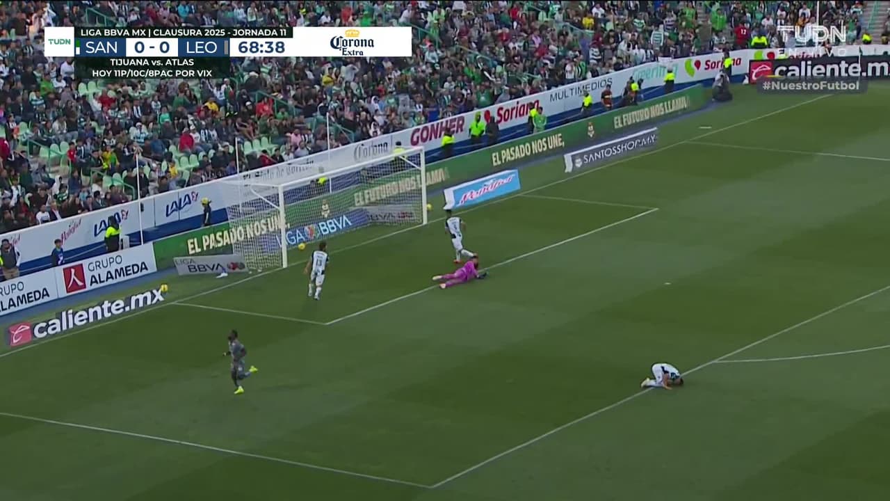 ¡Gol! Santos Laguna 0| León 1. Steven Mendoza (León) zurdazo desde el centro del área tras un contragolpe.