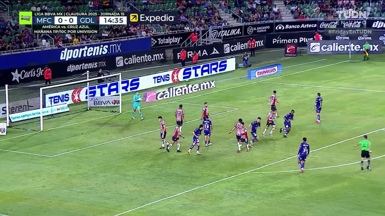 ¡Gol! Mazatlán FC 0| Chivas 1. Teun Wilke (Chivas ) disparo de cabeza desde el centro del área por el lado derecho de la portería. Asistencia de Roberto Alvarado con un centro al área.