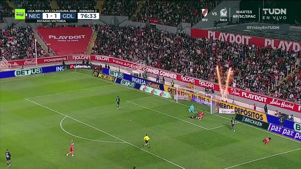 ¡Gol! Necaxa 2| Chivas 1. Tomás Badaloni (Necaxa) Disparo con la derecha desde el centro del área.