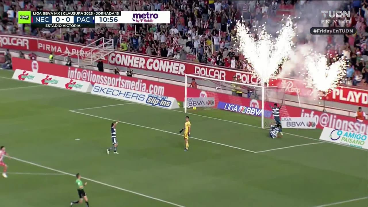 ¡Gol! Necaxa 1| Pachuca 0. Tomás Badaloni (Necaxa) Disparo con la derecha desde el lado derecho dentro del área.