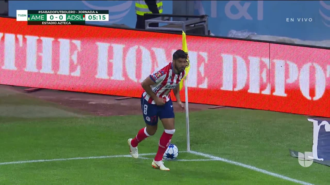 ¡Gol! América 0| Atlético San Luis 1. Unai Bilbao (Atlético San Luis) disparo de cabeza desde el centro del área por el centro del arco. Asistencia de Rubens Sambueza con un centro al área tras un saque de esquina.