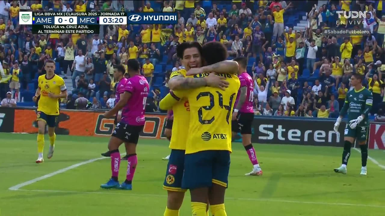 ¡Gol! América 1| Mazatlán FC 0. Víctor Dávila (América) disparo de cabeza desde muy cerca.