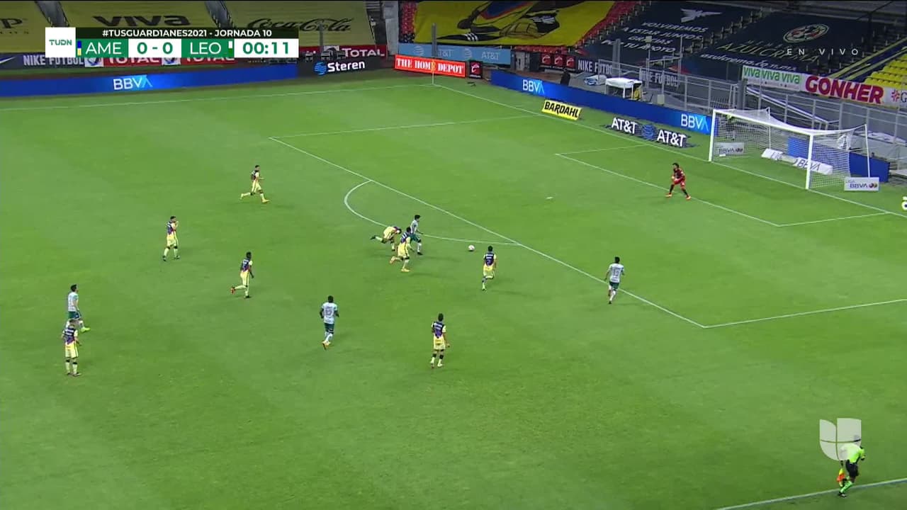 ¡Gol! América 0| León 1. Víctor Dávila (León) zurdazo desde el centro del área.