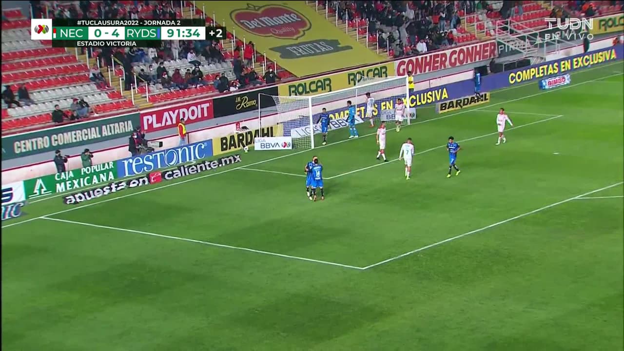 ¡Gol! Necaxa 0| Monterrey 5. Vincent Janssen (Monterrey) Disparo con la derecha desde el centro del área.