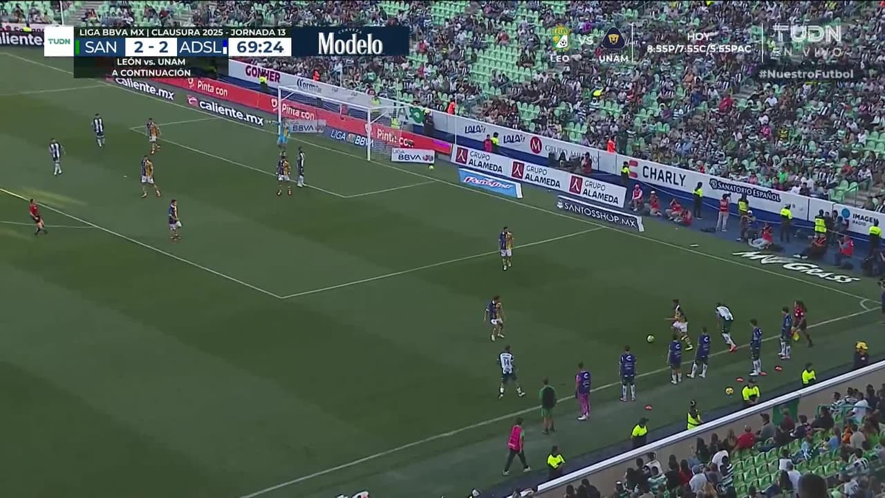 ¡Gol! Santos Laguna 2| Atlético San Luis 3. Vitinho (Atlético San Luis) zurdazo desde fuera del área tras un contragolpe.
