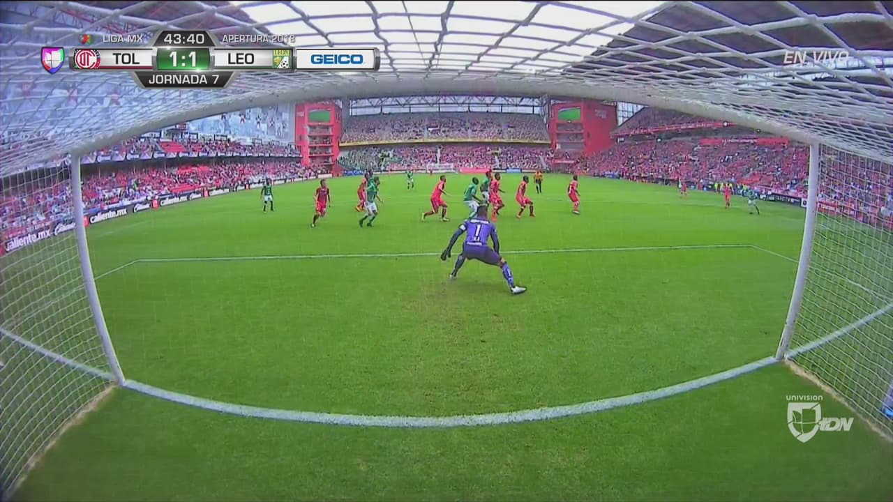 Tremenda salvada del arquero del Toluca tras este potente remate de cabeza.