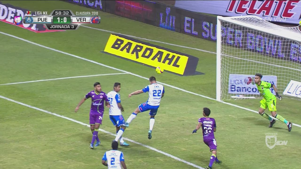 Gran cabezazo y Cavallini puso el 1-0 para el Puebla
