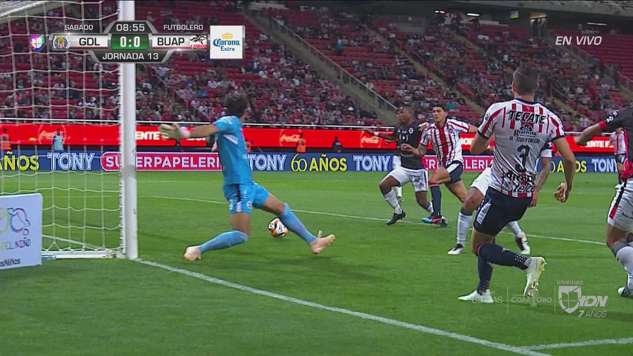 El lateral izquierdo de Chivas se metió hasta línea de fondo, sacó un centro raso pero ni Pulido ni Vega empujaron la pelota.
