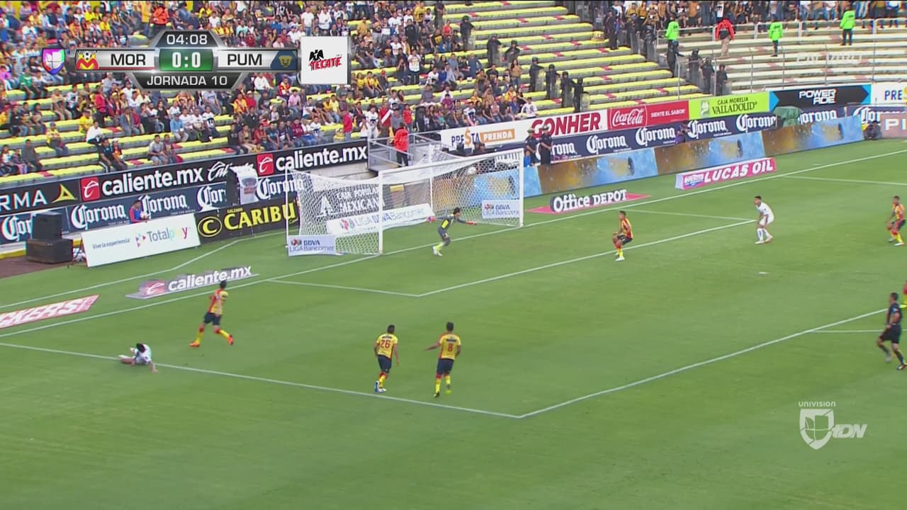 Pumas buscaba abrir el marcador y la complicidad entre Barrera y Juan Iturbe estaba poniendo fuego en el área de Monarcas.