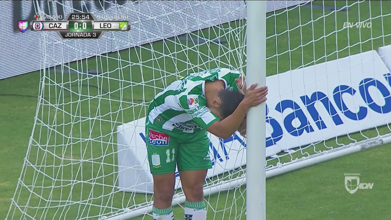 Con la presión de Julio César 'Cata' Domínguez, Andrés Andrade llegó solo al área de Cruz Azul y cruzó demasiado su definición ante Jesús Corona. León domina a placer en el Azul.