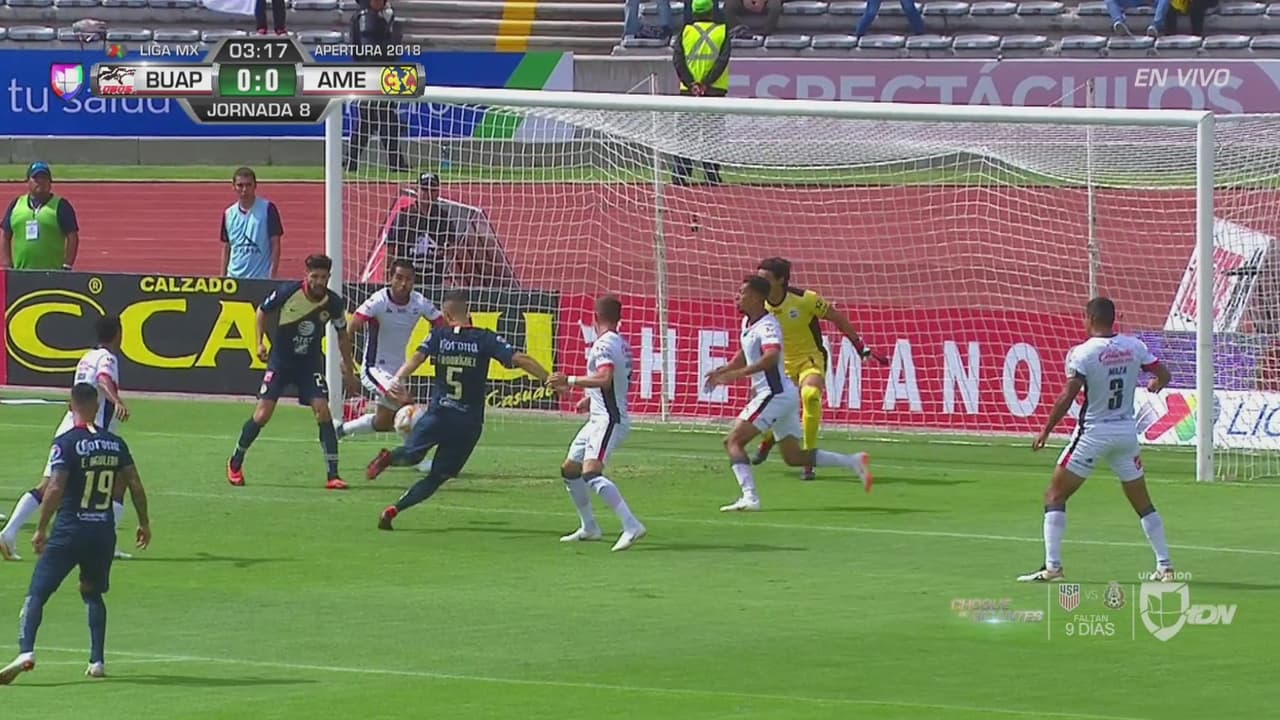 Un rebote tras un tiro de esquina dejó la pelota viva en el área pero Rodríguez no pudo conectarla bien.