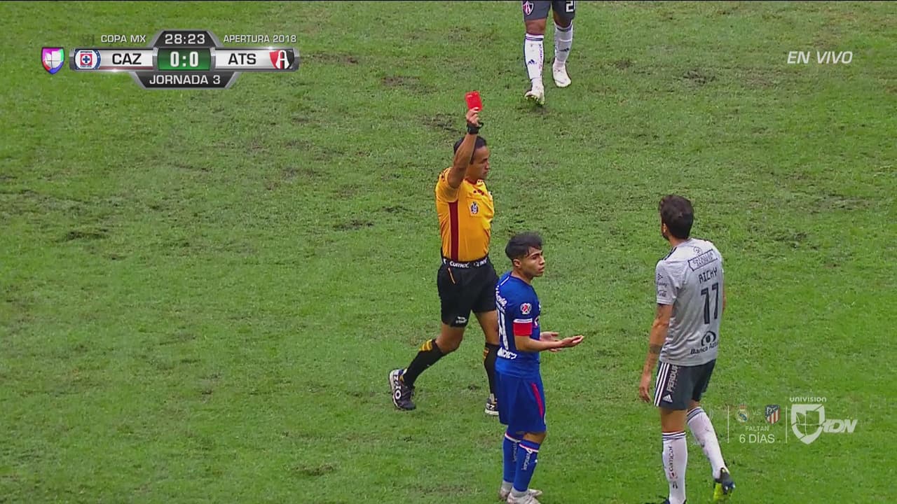 Al acercarse la media hora del partido, al 29', Cruz Azul parecía meterse en problemas con la expulsión de Josué Domínguez por una inocente plancha a Lorenzo Reyes.