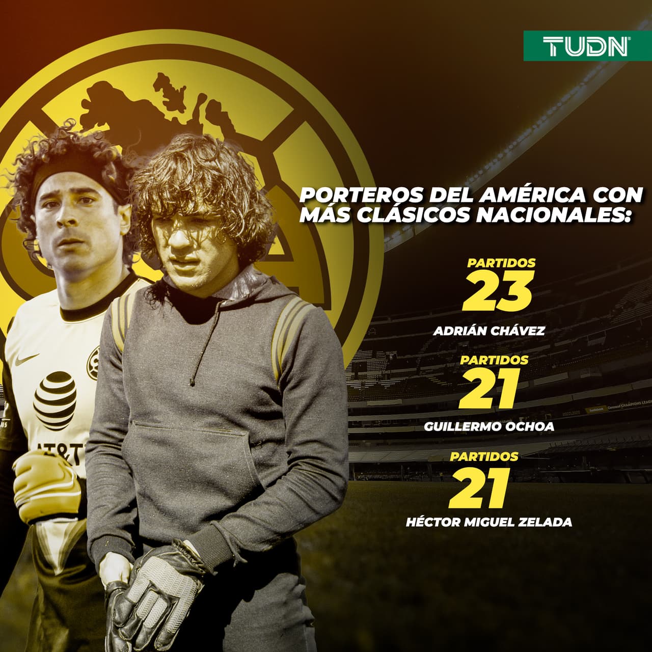 Guillermo Ochoa fue titular este miércoles en el Clásico Nacional e igualó a Héctor Miguel Zelada en juegos disputados en este tipo de partidos; Adrián Chávez aún cuenta con la marca.