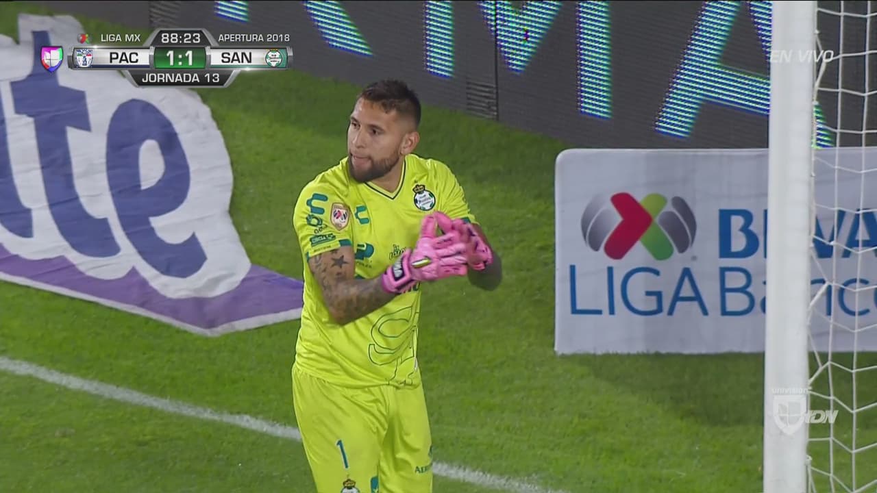'Dedos' López cobró un tiro libro con potencia, pero el guardameta 'santista' alcanzó a desviar.