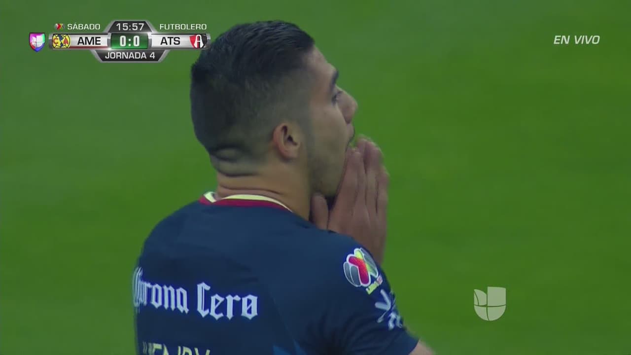 El jugador de las ‘Águilas’ se acercó peligrosamente con un zurdazo sólido que se quedó a nada de abrir el marcador.