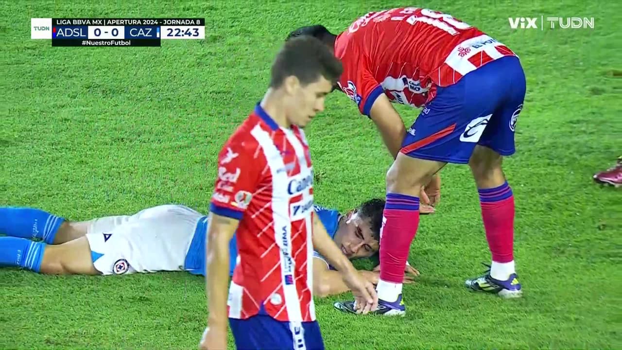 Jorge Sánchez se llevó un fuerte golpe en el rostro y terminó con un corte