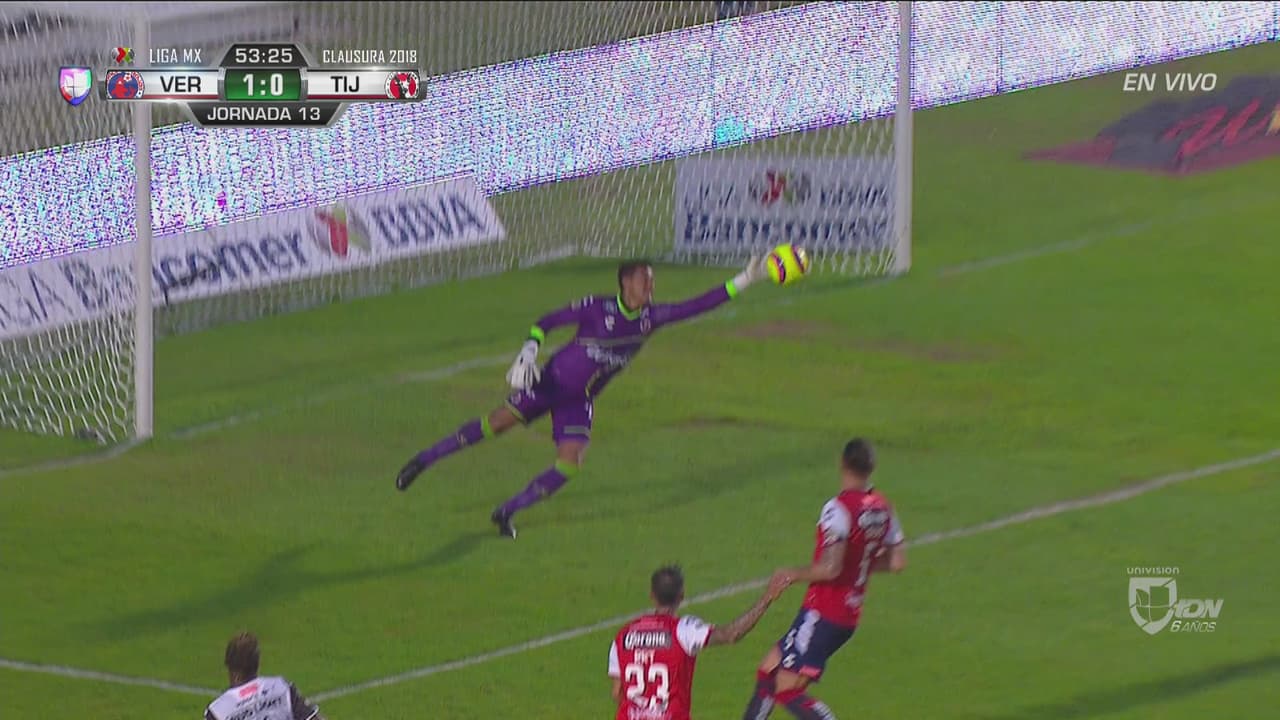 Bolaños sacó un remate con parte interna y dirección al ángulo lejano del arco escualo, pero Melitón voló para evitar la caída de su arco.