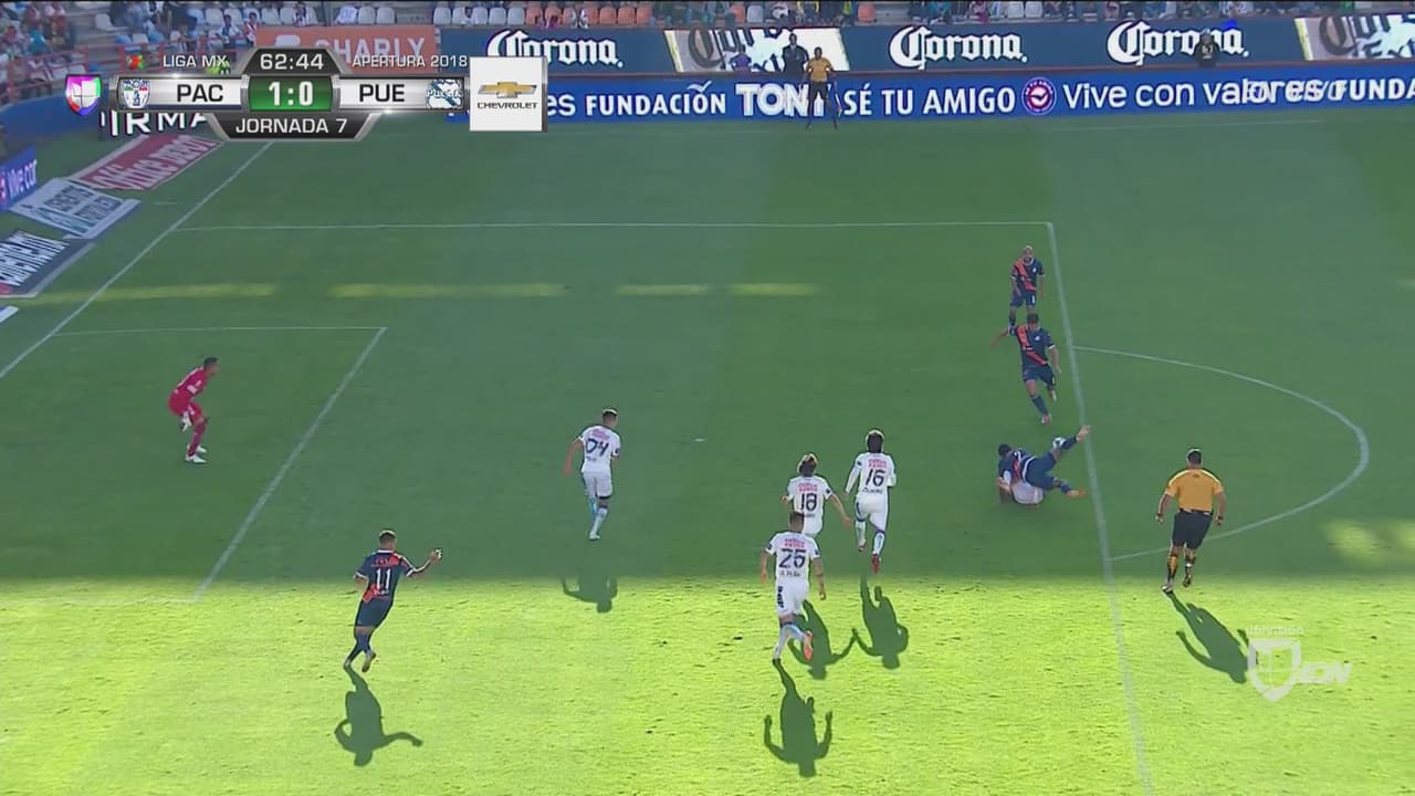 Tras un choque de Angulo y García, el balón le quedó a Cavallini en la media luna y disparó con fuerza pero a un lado de la portería. Error increíble.