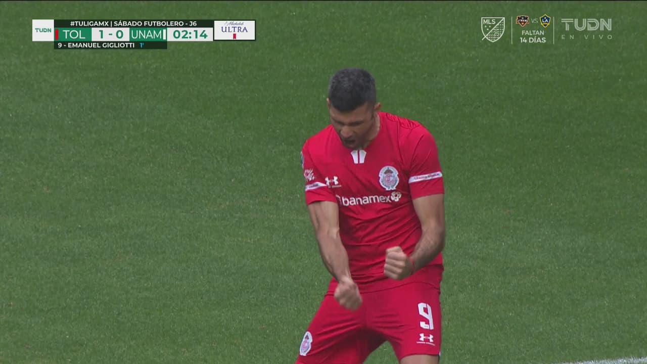 ¡Increíble gol a los 19 segundos! Gigliotti adelanta al Toluca 1-0