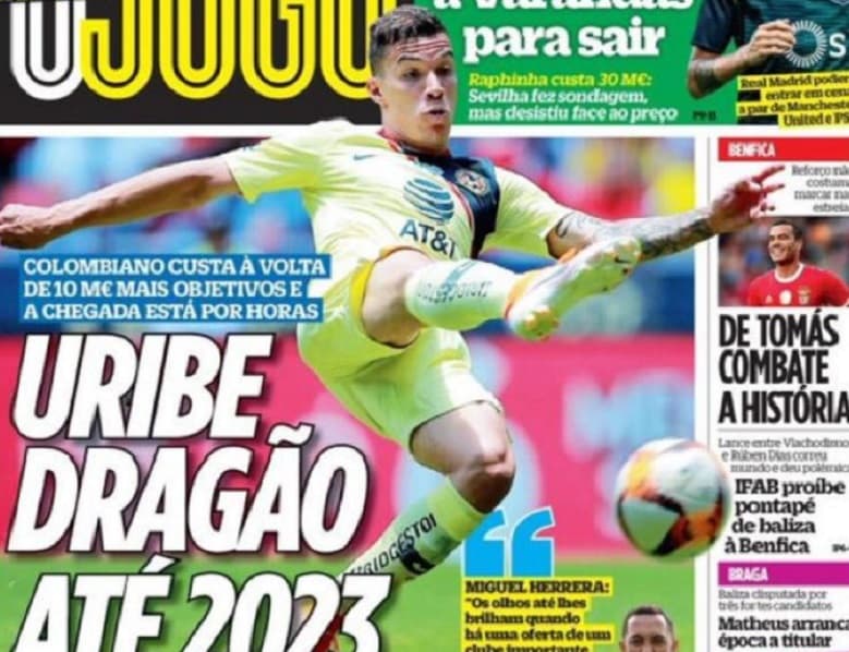 La llegada de Uribe al Porto todavía no se hace oficial aunque se habla de una transferencia cercana a los 10 millones de Euros, según O Jogo.