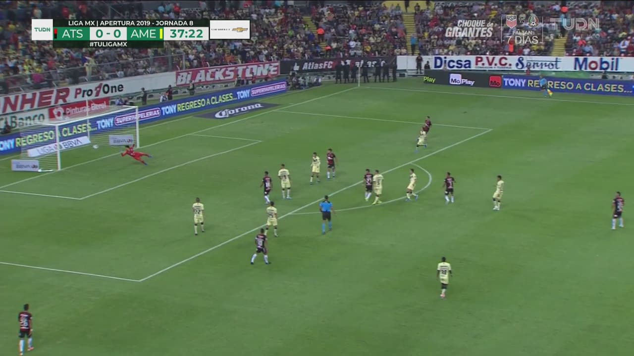 El jugador del Atlas recibió el balón y sin pensarlo mucho se dio media vuelta y sacó un disparo de zurda que pasó cerca del arco del América.