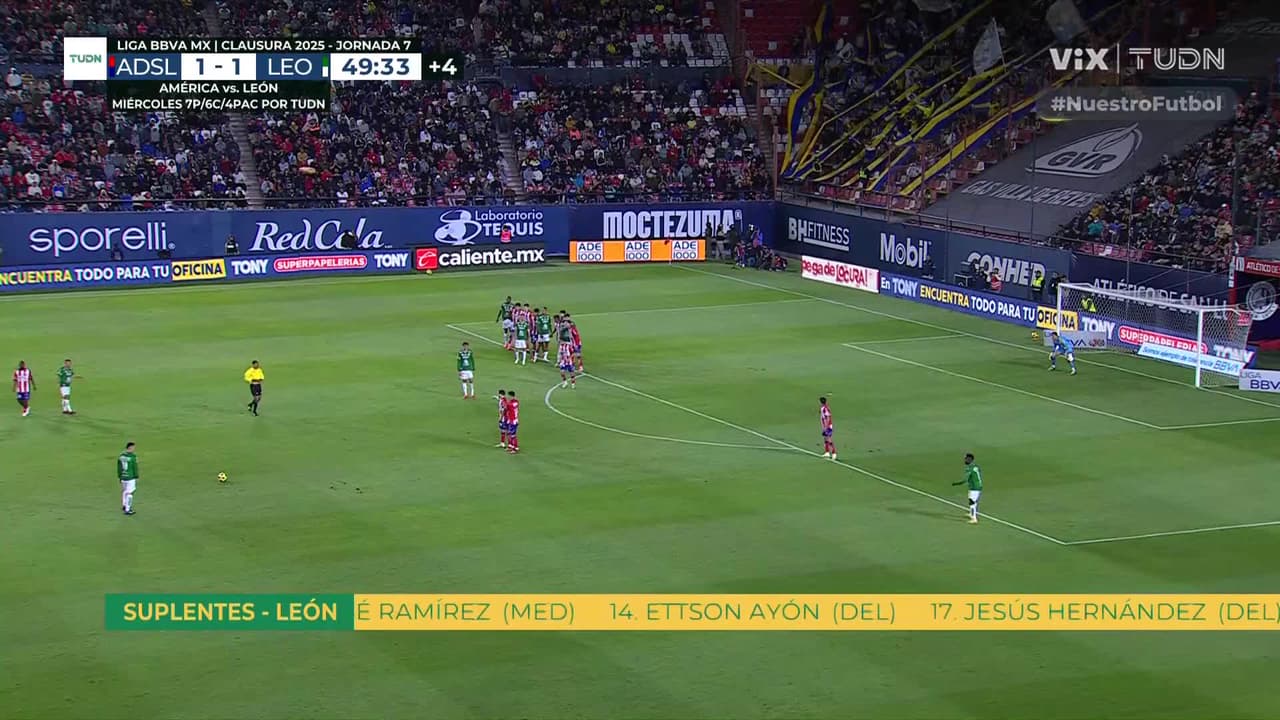 El colombiano no logra pegarle bien al balón y su disparo se va muy por encima de la portería potosina.