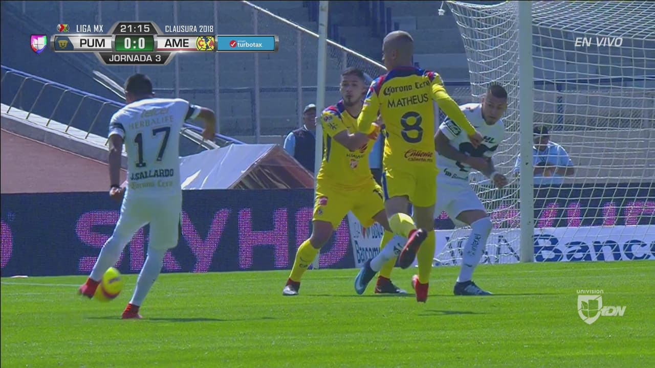 El jugador de los Pumas metió un disparo que estuvo cerca de convertirse en uno de los mejores goles de la jornada.